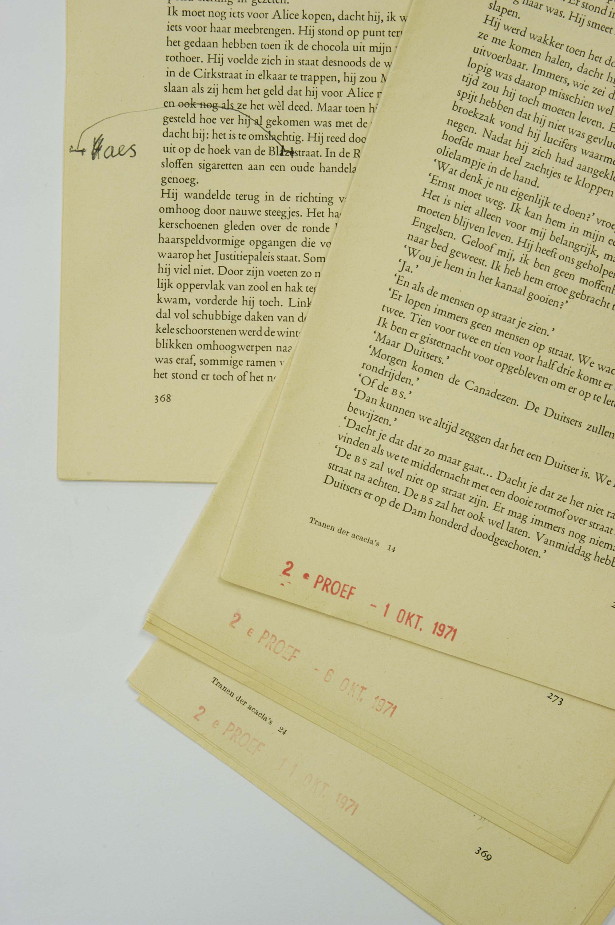 Drukproef voor de eerste druk van De tranen der acacia’s
