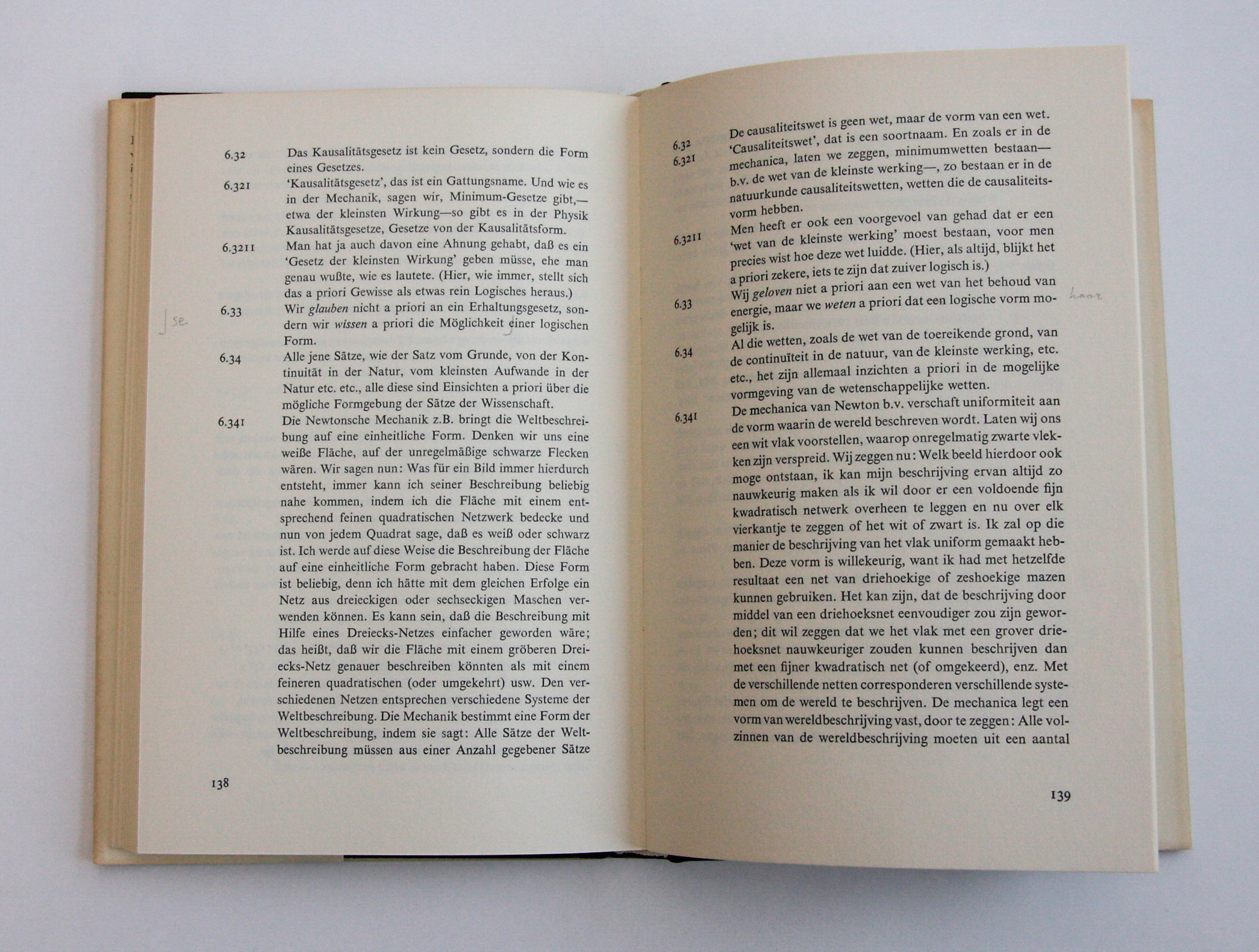 [2] Zie voor een overzicht van de besprekingen de editie, ‘De ontstaans- en publicatiegeschiedenis van Ludwig Wittgenstein, Tractatus logico-philosophicus. Vertaald en van een nawoord en aantekeningen voorzien door W.F. Hermans (1975)’, p. 1069-1072.